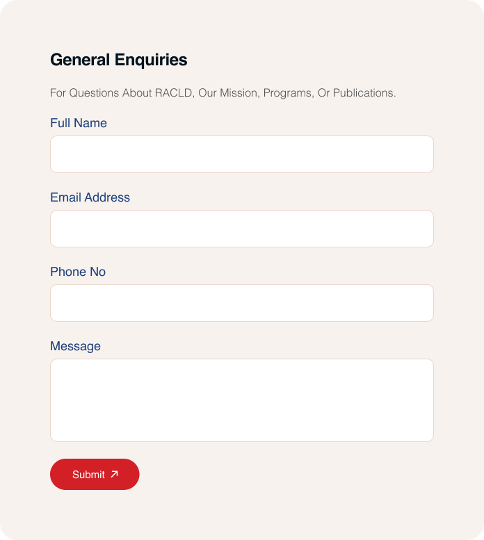 For Questions About RACLD, Our Mission, Programs, Or Publications.